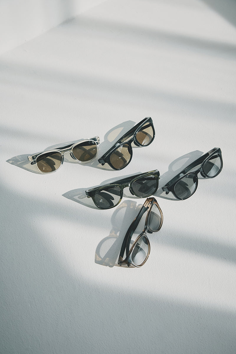 サングラスのカラーは定番のブラックに加え、透明感のあるベージュクリア、ダークグレーなどナチュラルな5色展開となっています。