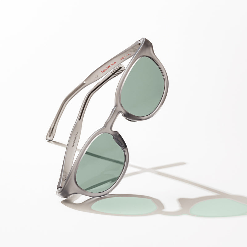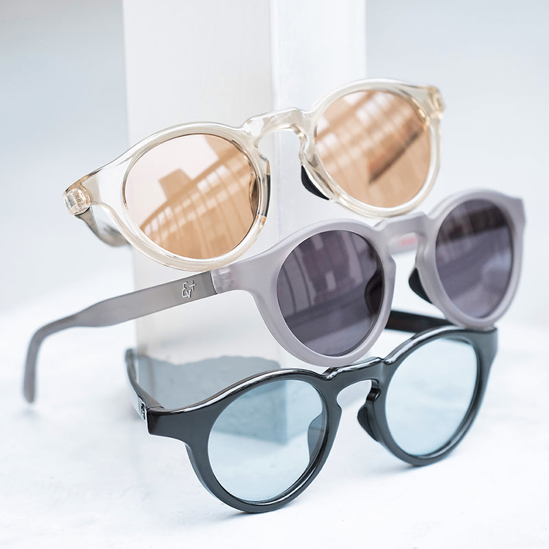 Levの特徴でもある「メガネとサングラスの中間的なデザイン」を体現できるよう、紫外線に反応して色が変化する調光レンズをラインナップ。