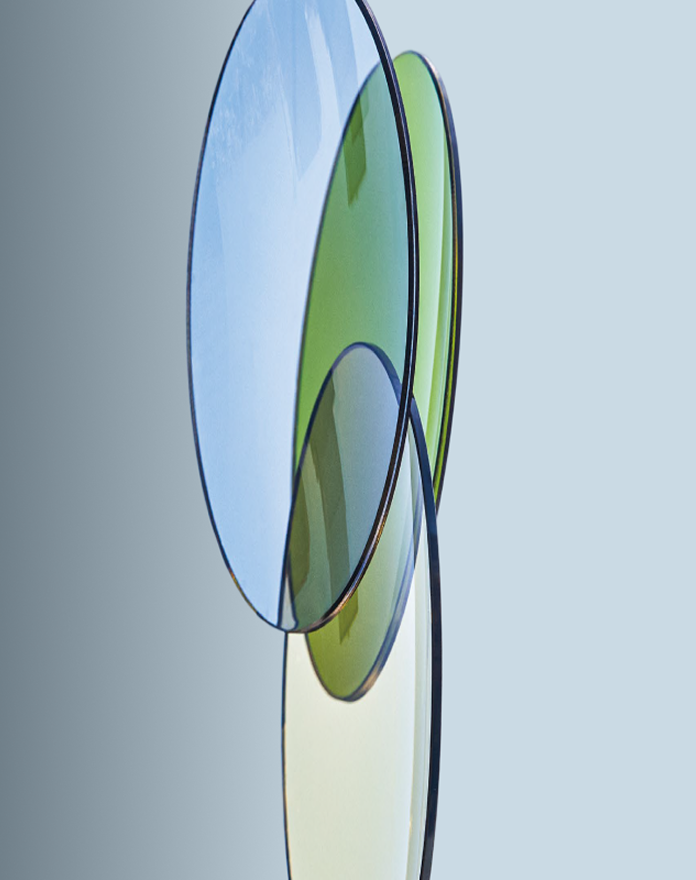 反射防止、耐衝撃、耐キズ、耐熱、撥水など、サングラスレンズに必要とされる すべての機能を備えています。