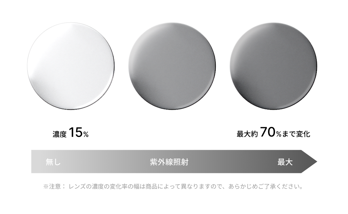 ※2:レンズカラーによっては、レンズの濃度の変化率や、見え方は異なります。