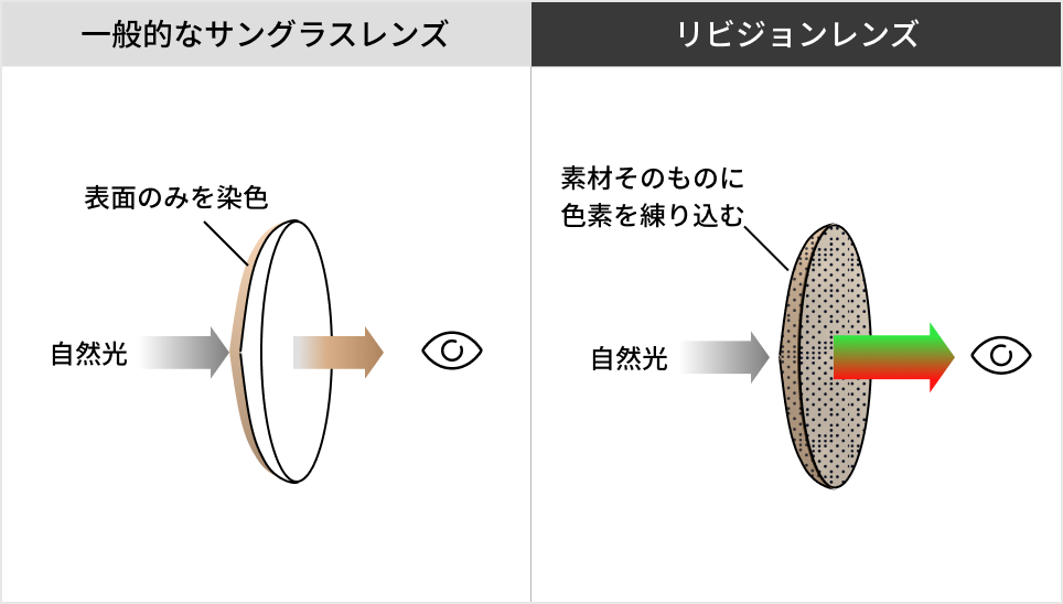リビジョンレンズは、特定の光の波長をコントロールすることで、景色のコントラストを劇的に向上させる高機能レンズです。